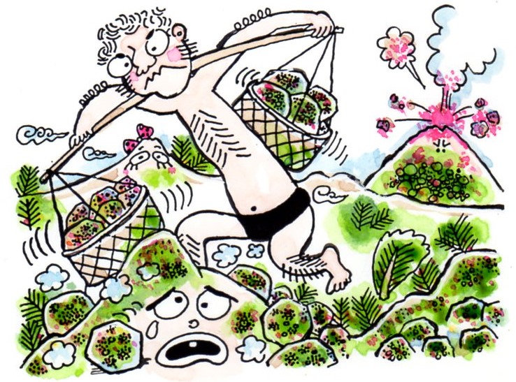 八ヶ岳を富士山より高くしようと、もっこで運びお兄さんの八ヶ