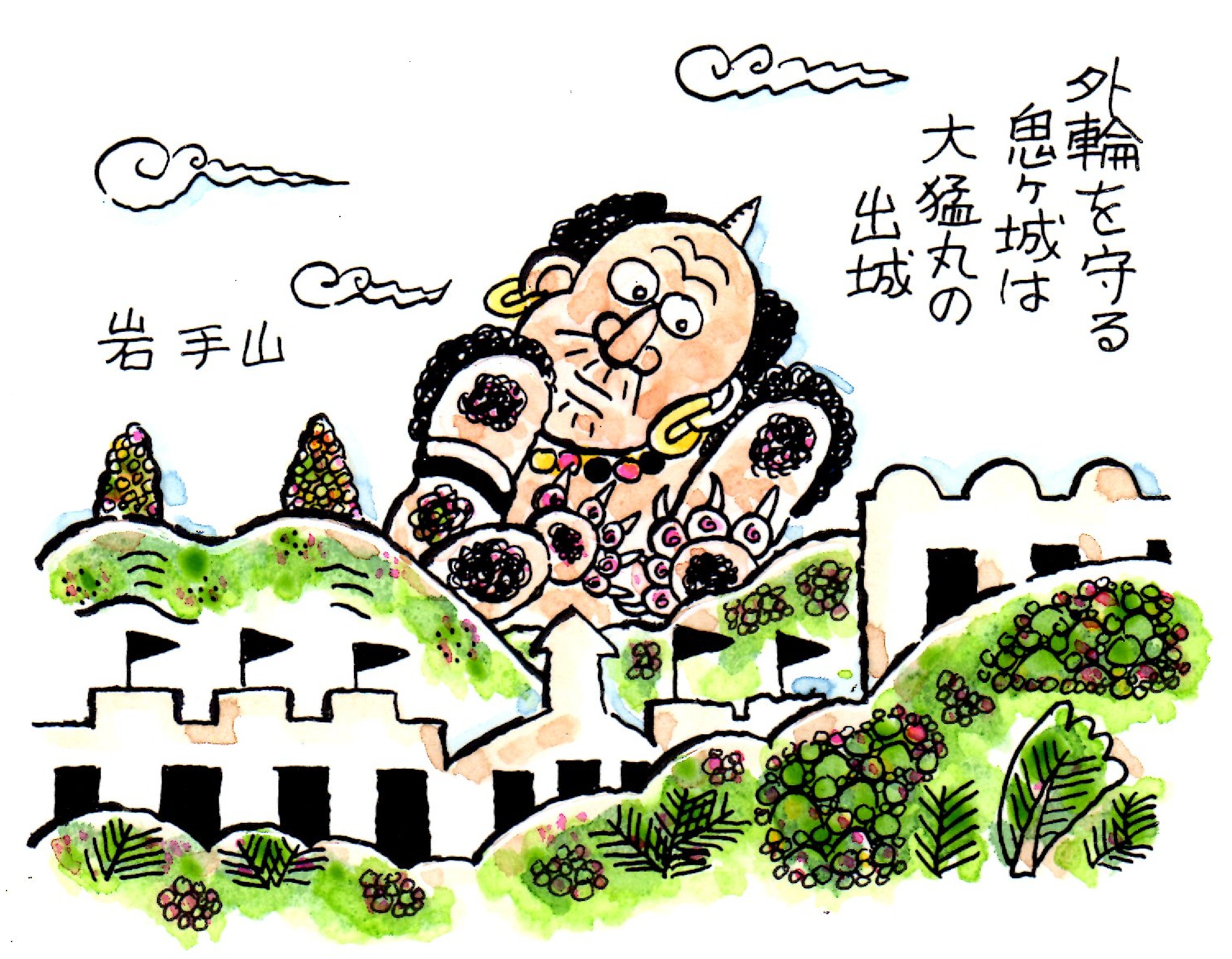 をしき、大猛丸を攻め立てます。大猛丸は奥の舘である岩手山の鬼