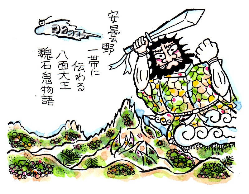 自らを八面大王(はちめんだいおう)と名乗り、妖術を使って悪行