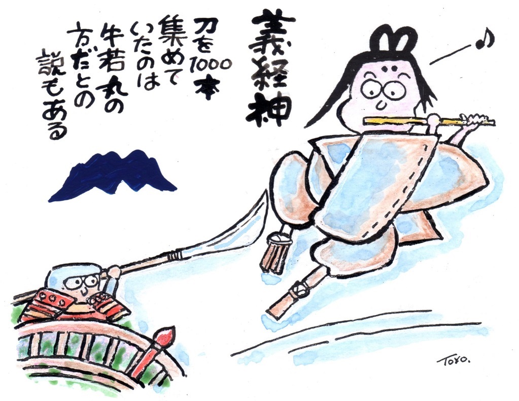 橋で弁慶との対決になるわけですが、ふつうは、弁慶が太刀千本を