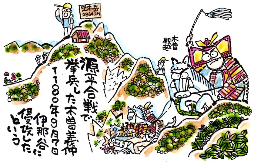 の令旨(りょうじ)を受けて木曽に挙兵、先述の中央アルプス木