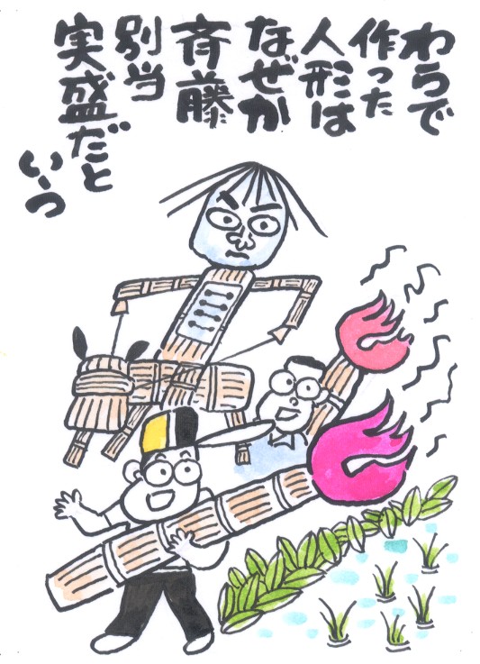 この行事は、斉藤別当実盛(さねもり)と呼ぶわら人形をつくり、