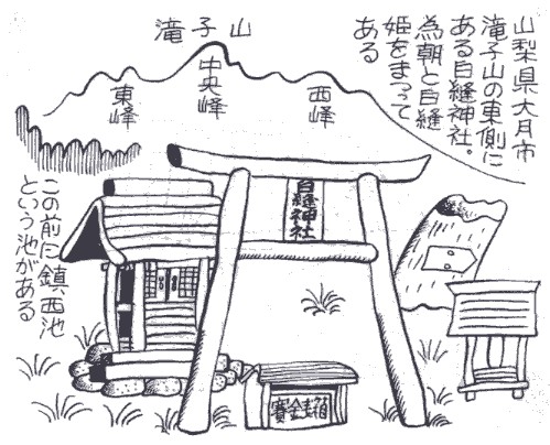 あるという。土地の人は滝子山を鎮西ヶ山と呼び、為朝にちなむ故