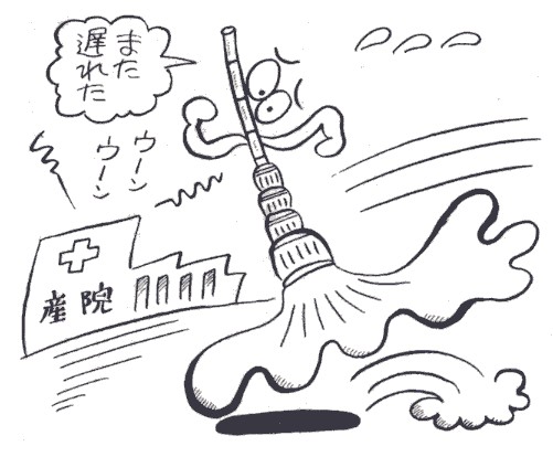 お産は女性にとって一大事業。安全であるよう、箒で産婦のおな