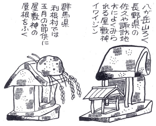 屋敷神には、各家々でまつる型(各戸屋敷神)と、特定の旧家に
