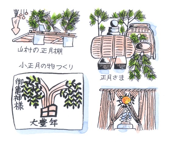大正月は、公家や武家、商家の間で祝ったのに対し、農村では小正