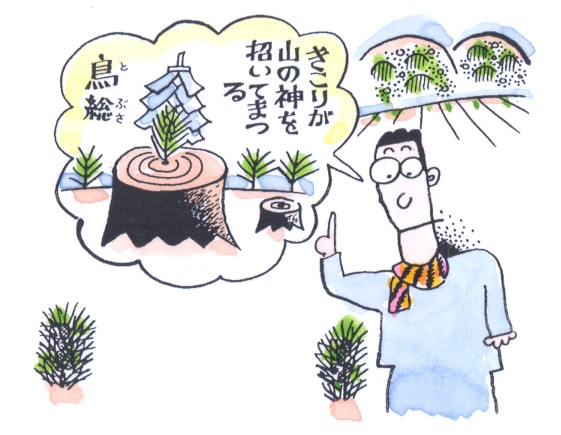 門松は、正月の神祭りの祭場を示すもので、歳神(としがみ)さ