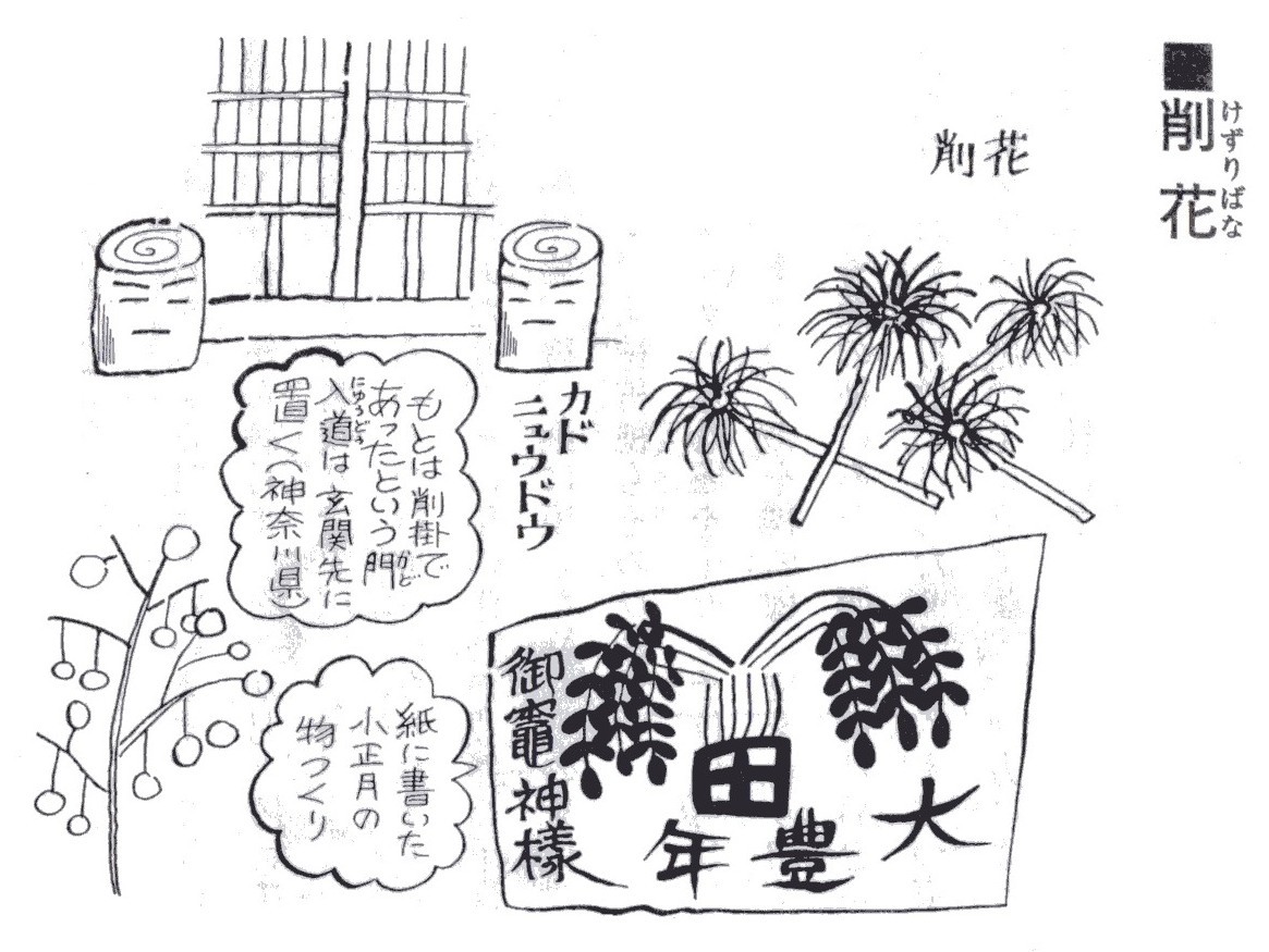 き、穂垂(ほだれ)、繭玉、アワボヒエボ、餅花、削掛(けずりか