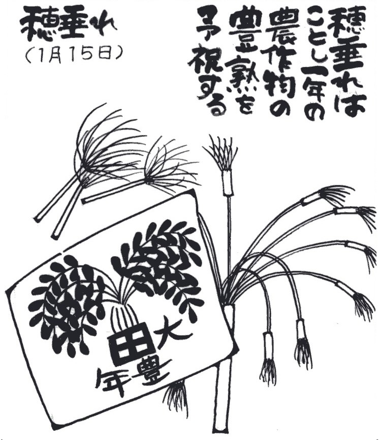 け)などの正月の農業予祝行事がいまでも主に1月の14から15日に