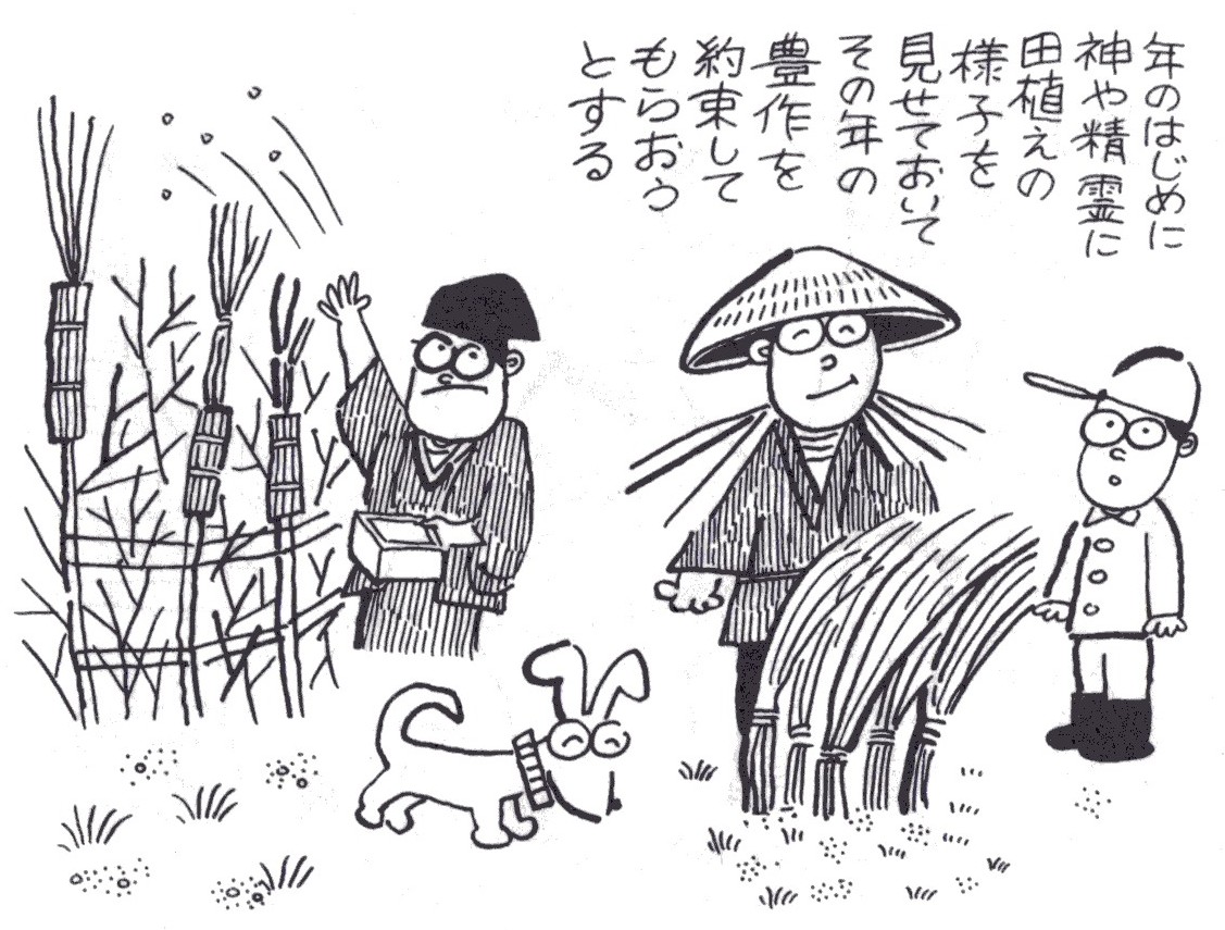 々をまわって歌いおどる、田植え踊りというものもあります。(26)