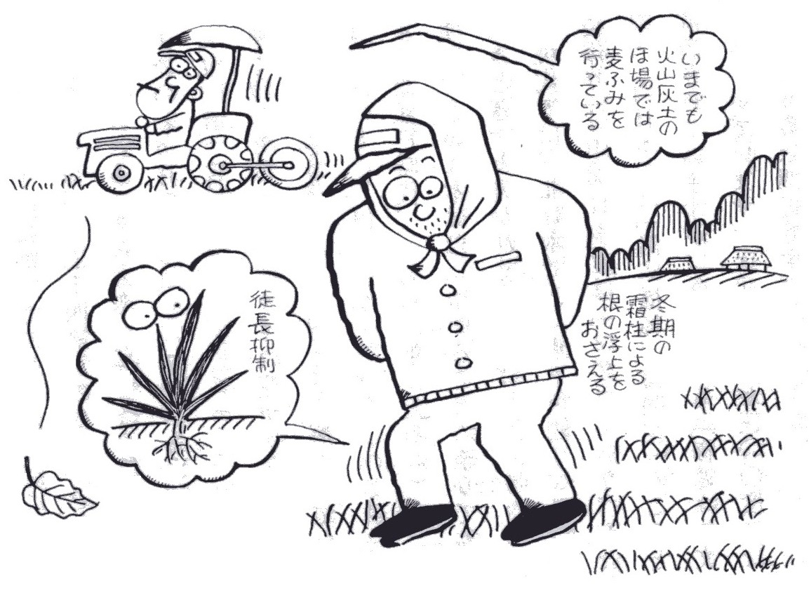 育の方まで力が回りません。そこで麦を踏んで茎や葉に傷をつけて、