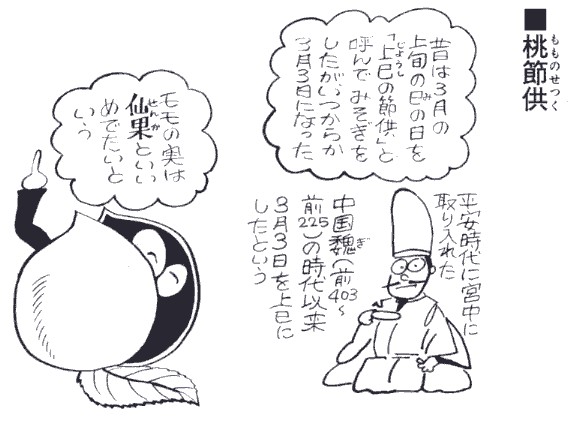| ▼この章のもくじ ・弥生(やよい) ・桃の節句 ・ひな祭り ・菱もち ・草もち ・桃酒 ・白酒 ・桜もち ・ひな荒らし ・流しびな ・啓蟄 ・田の神祭り ・十六だんご ・農神下ろし ・つみ草 ・春の彼岸 ・ぼたもち ・春分 ・春祭り ・春の社日 ・なたね梅雨 |