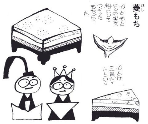 ▼菱もち 3月3日の桃の節句には昔からおひなさまに「ひしもち」を供え |