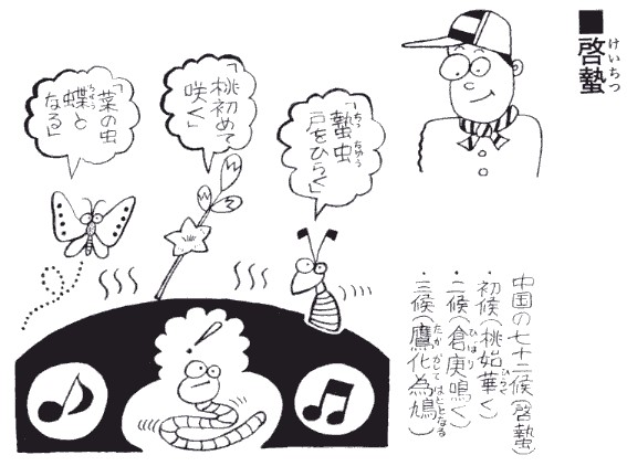 ▼啓蟄(けいちつ) カレンダーの3月はじめのところに「啓蟄」と書かれています。 |