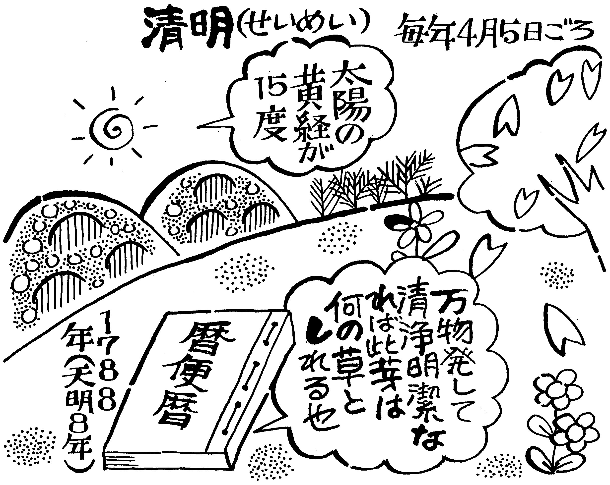 カレンダーやこよみの4月5日ころのところに清明(せいめい)