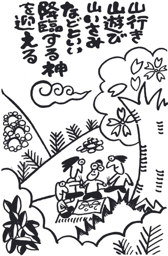 このように神聖な行事もいつしか花よりだんご、いまの花見のよ