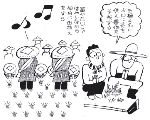 植え神事)には、正月などに田植えのまねごとをして豊作を予祝す