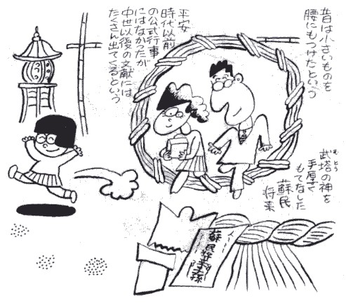 どにこの輪をつるして、これをくぐると身のケガレが祓われるのだ