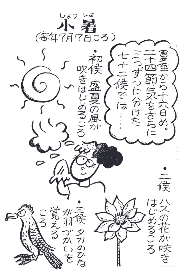 これらをまた3つずつに分けたものを「七十二候」と呼び、大暑