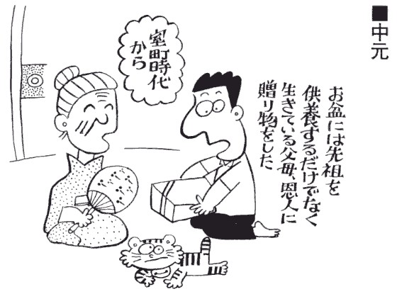 いまでは中元といえば上司や得意先、先輩などへの贈答をさすよう