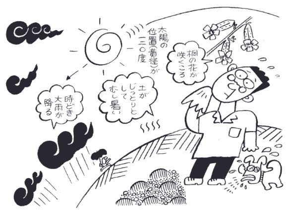 の三候は各々「桐の花が咲き出すころ」「土がじっとりとしてむし
