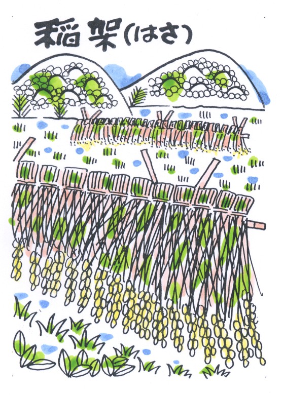 稲架は、はさ、とうか、いなか、はざ、また、稲木、稲掛けなど