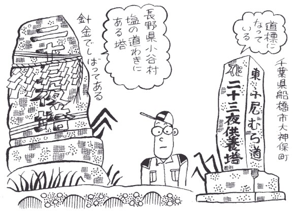 二十三夜塔が全国に分布しており、最もよく見かけます。月待は特