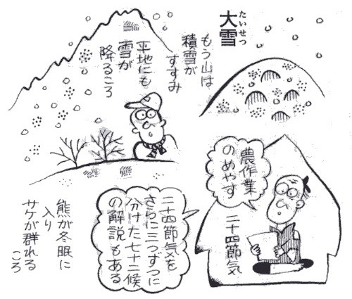 ▼ 大 雪 毎年、12月7日ころは大雪(たいせつ)。この時期、高い山の上 |