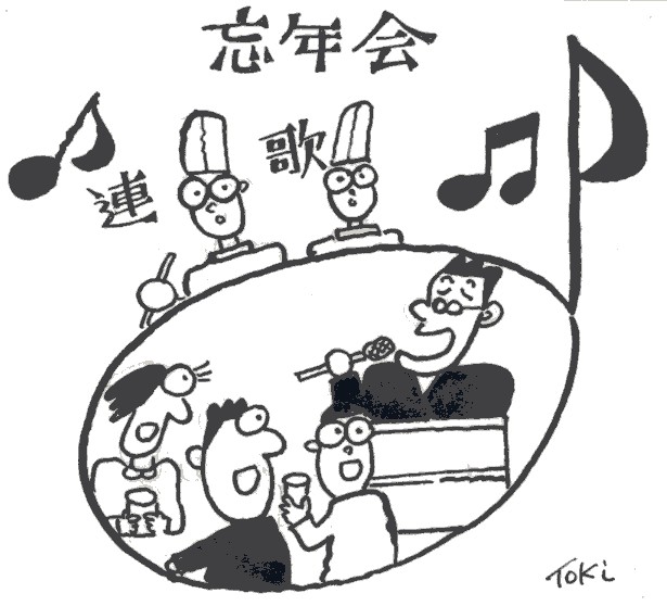 このように歌を詠む忘年会が、いつしか歌をうたう忘年会に変わ