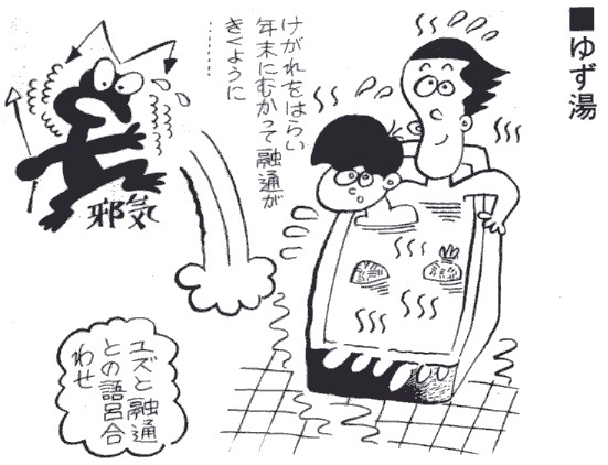 ▼ゆず湯 冬至(毎年12月22日ころ)にはゆず湯に入ります。輪切りにした |