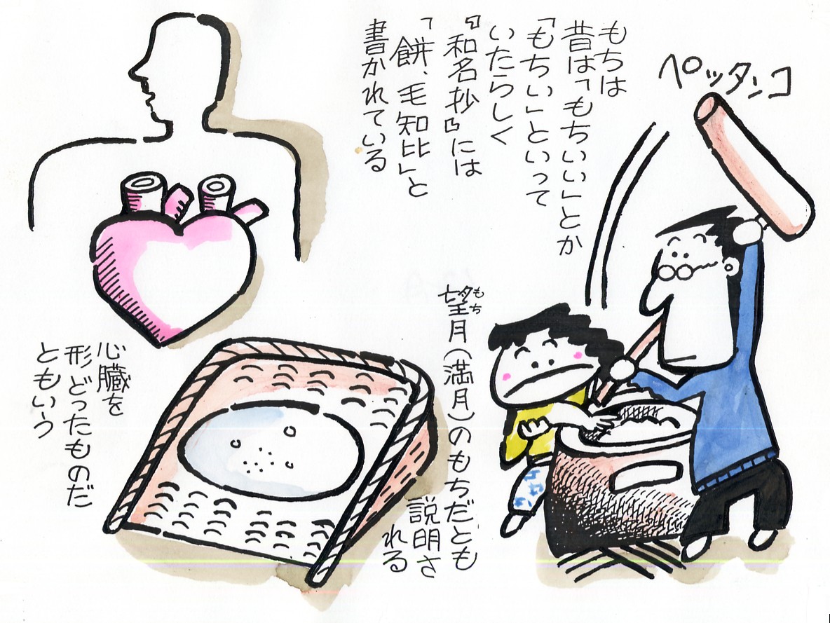 ▼餅つき 正月用の鏡餅やお雑煮のもちは、かつては個々の家で用意しまし |