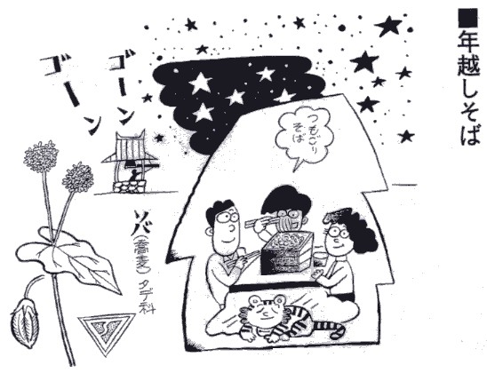▼年越しそば 大みそかの夜は、年越しそばを食べて縁起を祝います。「みそか |