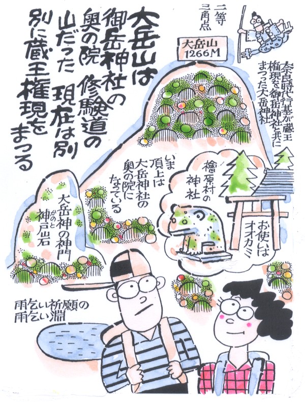 ■奥多摩・大岳山の神社 奥多摩の大岳山(1266m)は神官の冠の形に似た山容でよく目 −90− ―――――――――――――――――――――――― 大岳山の南麓檜原は修験道の道場としての神社が多く、ほとんど
