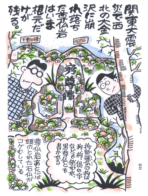 尊仏とは拘留孫仏(くるそんぶつ)のこと。尊仏岩は高さ15、