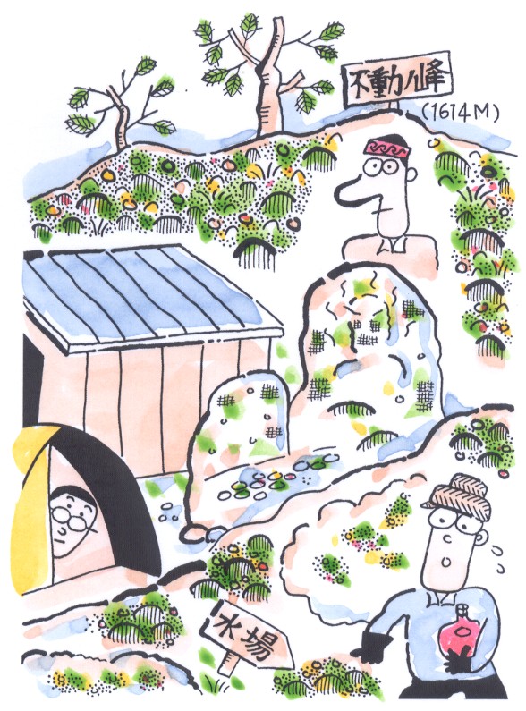 何年か前の春、尊仏山荘で「山のイラストはがき通信」の個展を