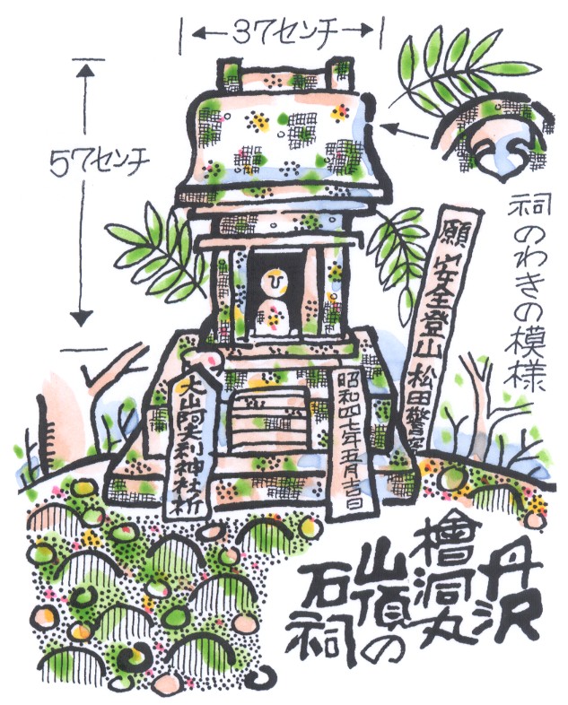 ■丹沢・檜洞丸の祠 西丹沢にどっしりと落ちついた山容を誇る檜洞丸(1601m)。 −114− ―――――――――――――――――――――――― そういえば、丹沢大山の阿夫利神社の主祭神は大山祗神になって
