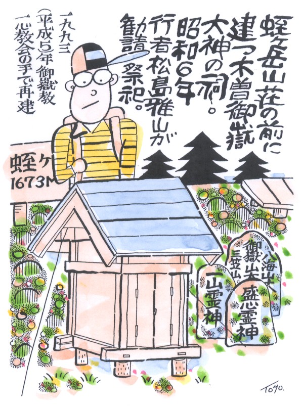 ■丹沢・蛭ヶ岳の祠 丹沢山塊最高峰の蛭ヶ岳(1673m)。ヒルという名前につい −116− ―――――――――――――――――――――――― 現在、山小屋の前にあるの祠は、木曽の御嶽山から御嶽大神の分