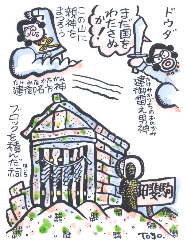 建御雷神(たけみかづちがみ・建御雷之男神)に破れ、諏訪湖まで