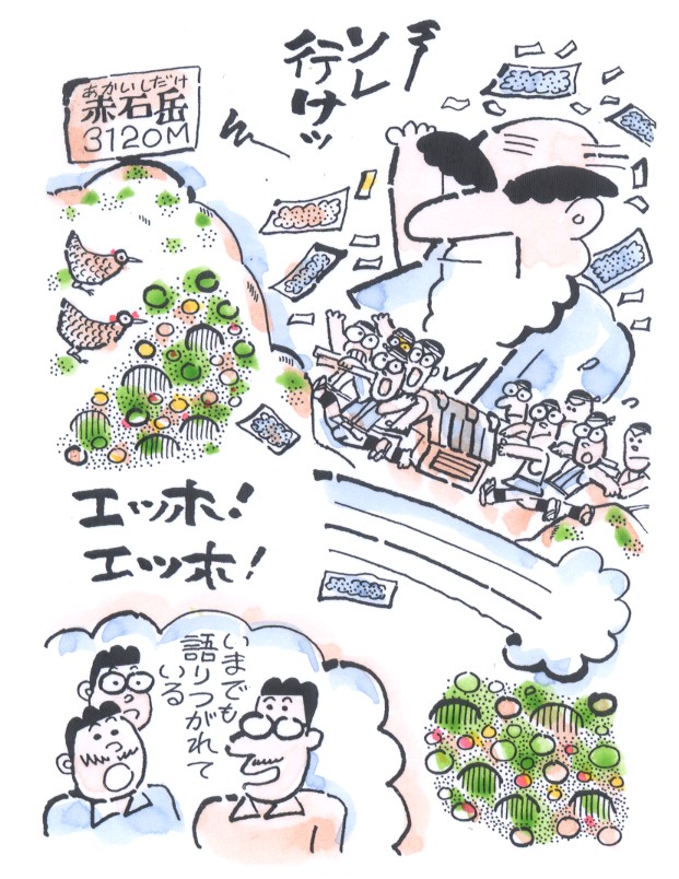 まつみね)から山頂まで登山者が続き、アリが列をなす状態です。