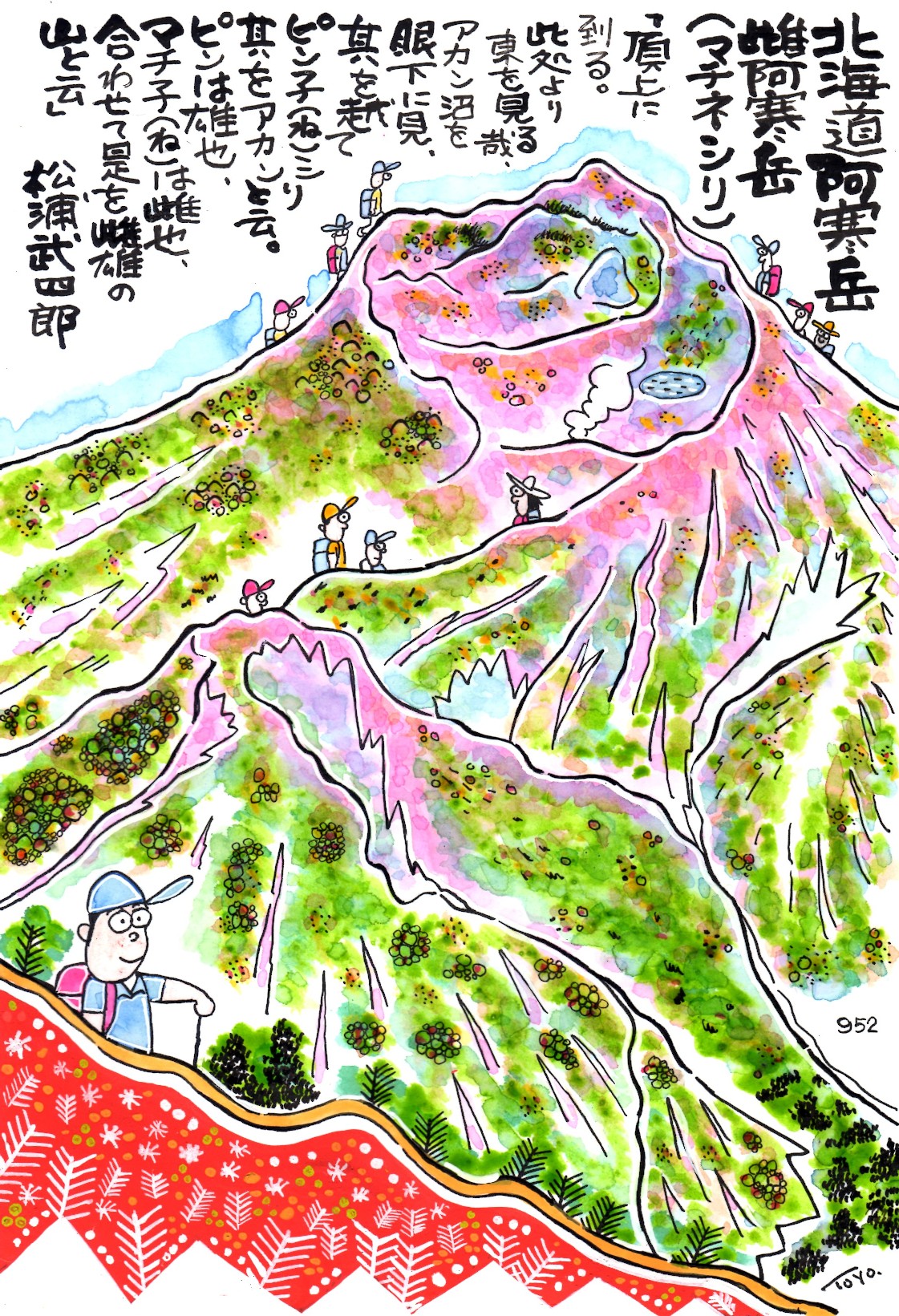 「ピイ子(ね)シリ。是前に云雄阿寒岳なり。山、雌岳よりは少し