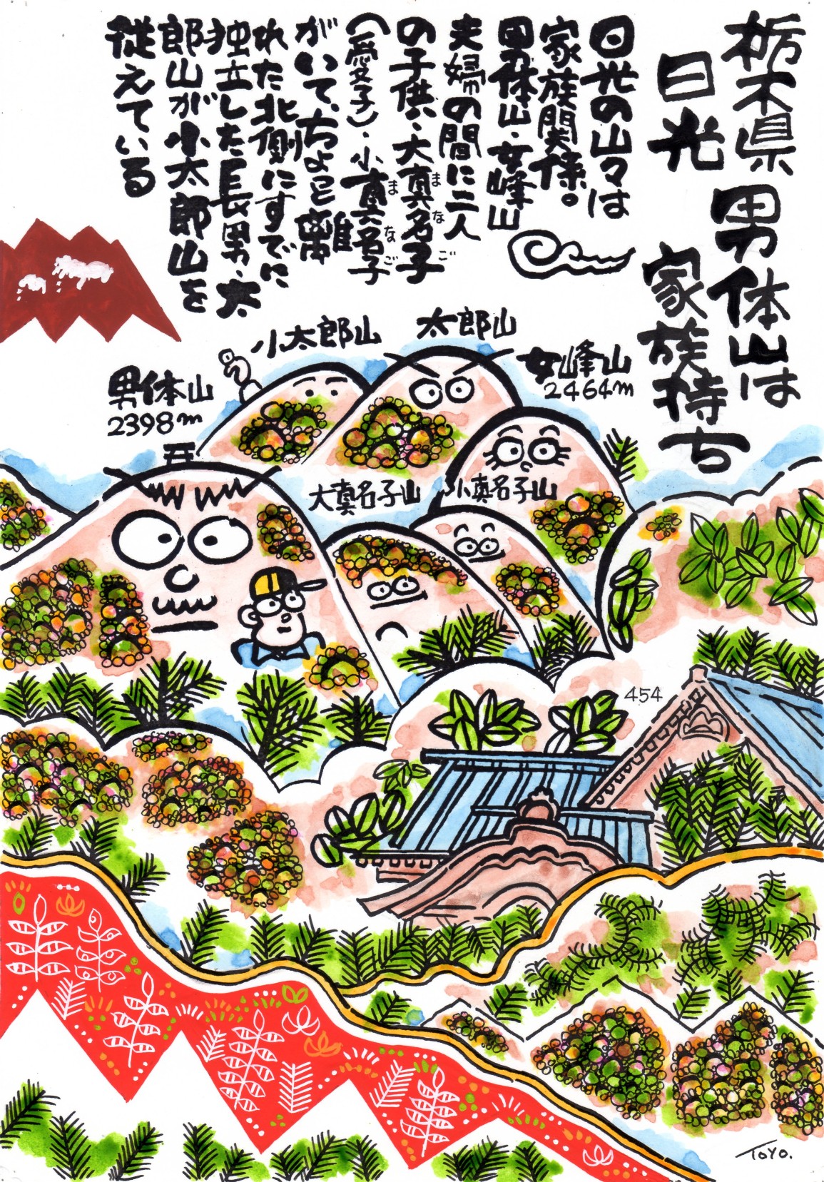 日光男体山は家庭持ちだという。北東の女峰山の妻との間に、2人