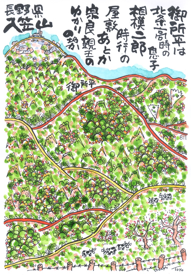 という。山頂北側にある御所平峠の御所平は北条高時の息子相模二