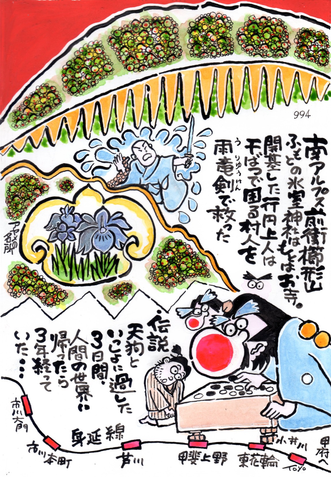 昔、日照りが続きこの山ろくの村人が苦しんでいました。そこへ伊