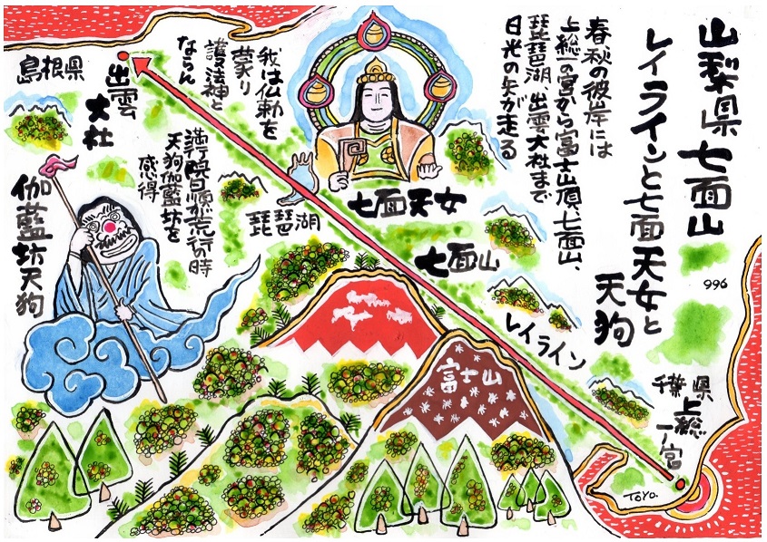 通り七面山の山頂に届き、さらに琵琶湖の上から出雲へと届くとい