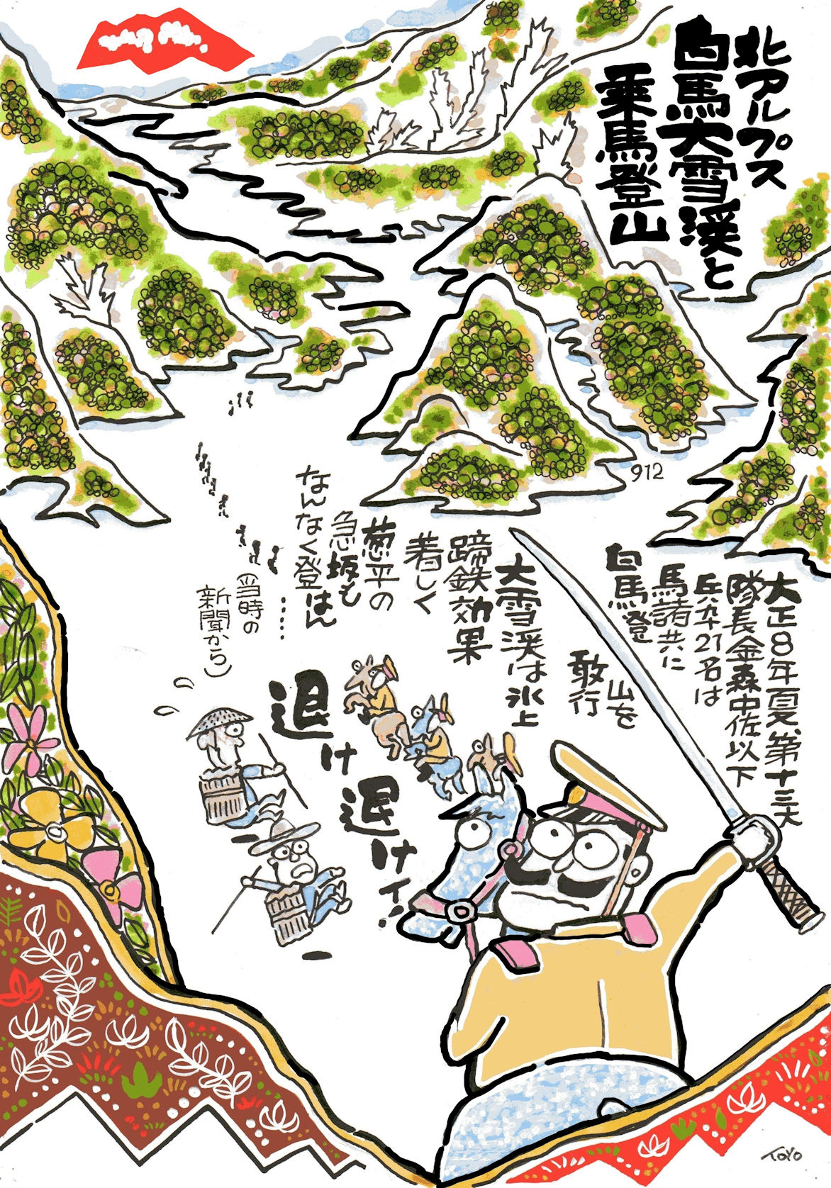 ば、軍馬に乗った軍人たちの一行が白馬大雪渓を駆けあがり白馬