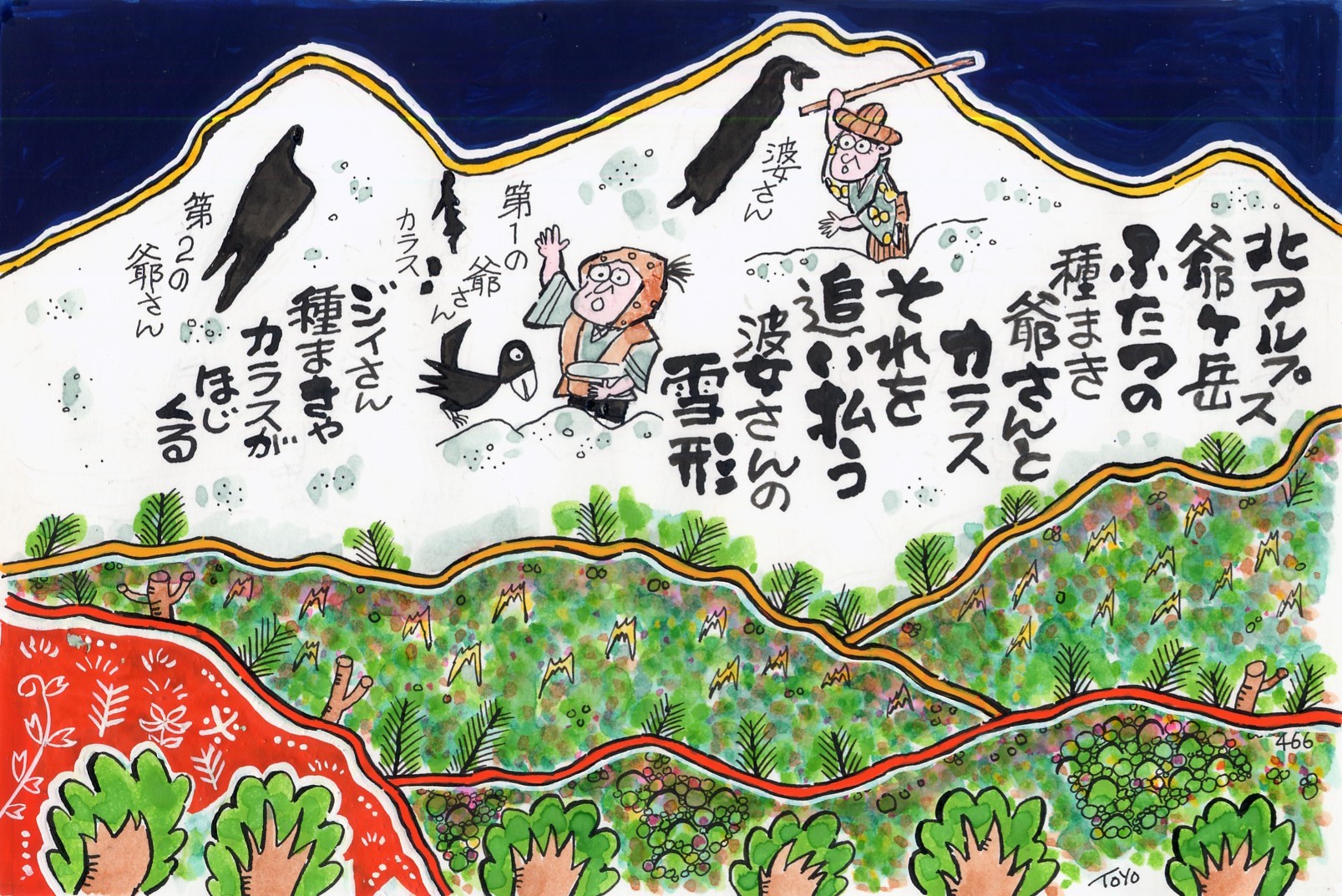 でその名があります。しばらくすると爺さんの足元にカラスの雪形