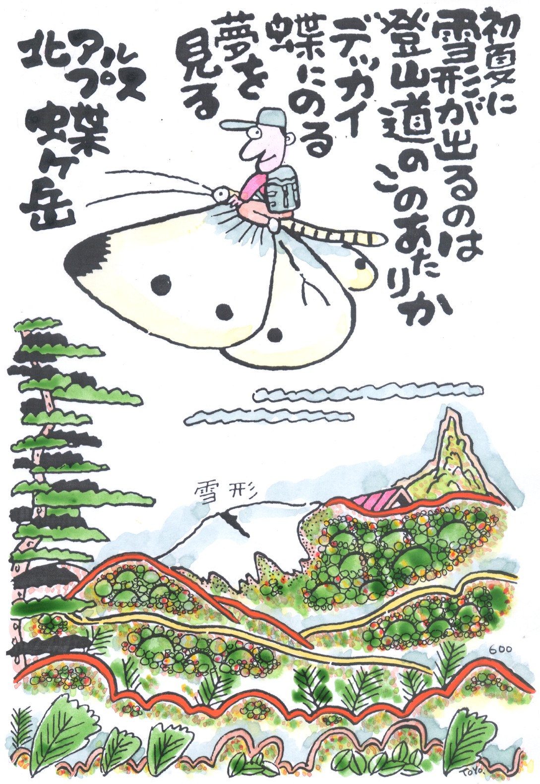 チョウの雪形が出るのはこのあたりか。デッカイ蝶に乗る夢を見る