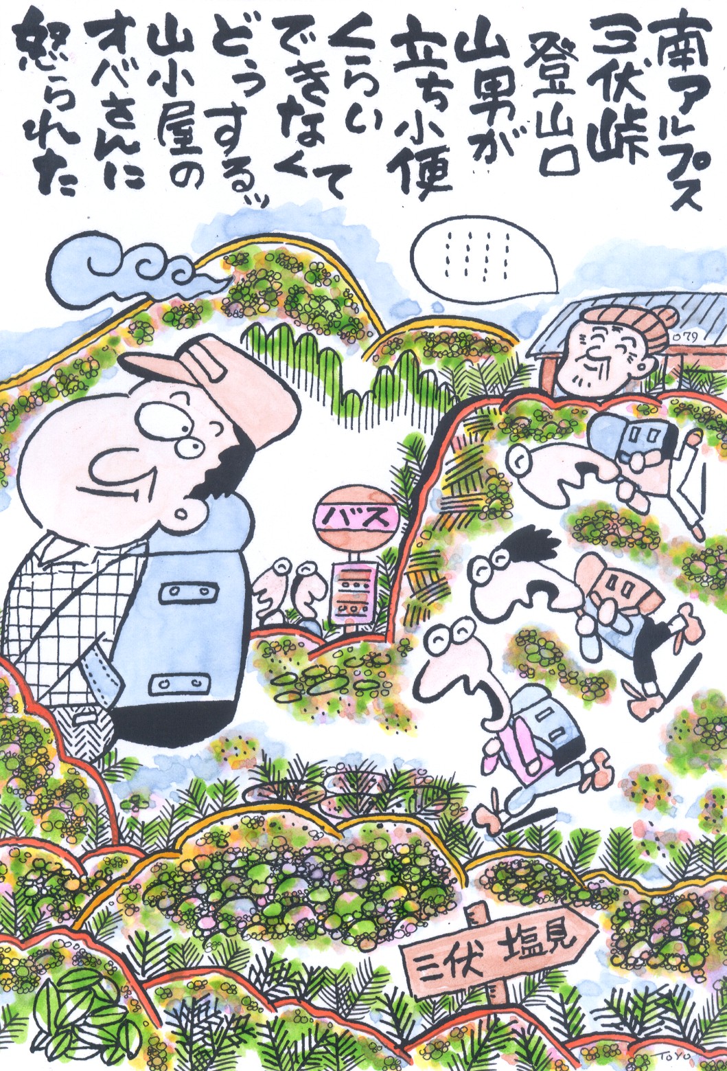 ところで、山小屋の物かげで立ち小便をしているのをオヤジに見つ