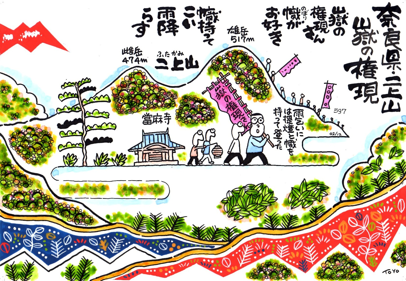 は「二神山」の意味で、雄岳・雌岳がならぶ双子山です。このう