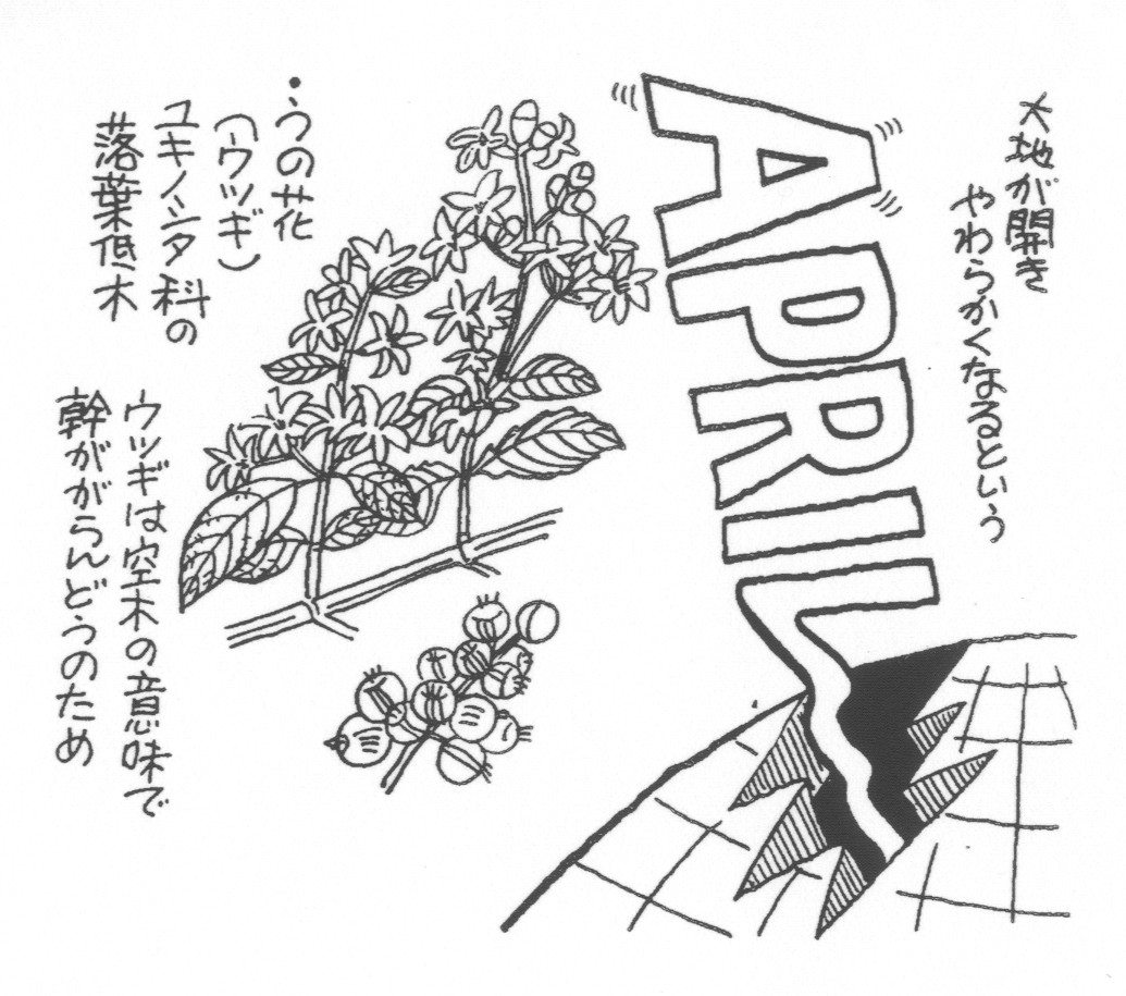 4月は1年の第4番目の月です。日本では旧暦(陰暦)を使っていた時代は、4月を卯月(うづき)と呼びました。卯月とは卯(う)の花(ウツギの花)の咲く月の意味だとも、また農作物の種の「植え月」の意味からきたのだともいわれています。